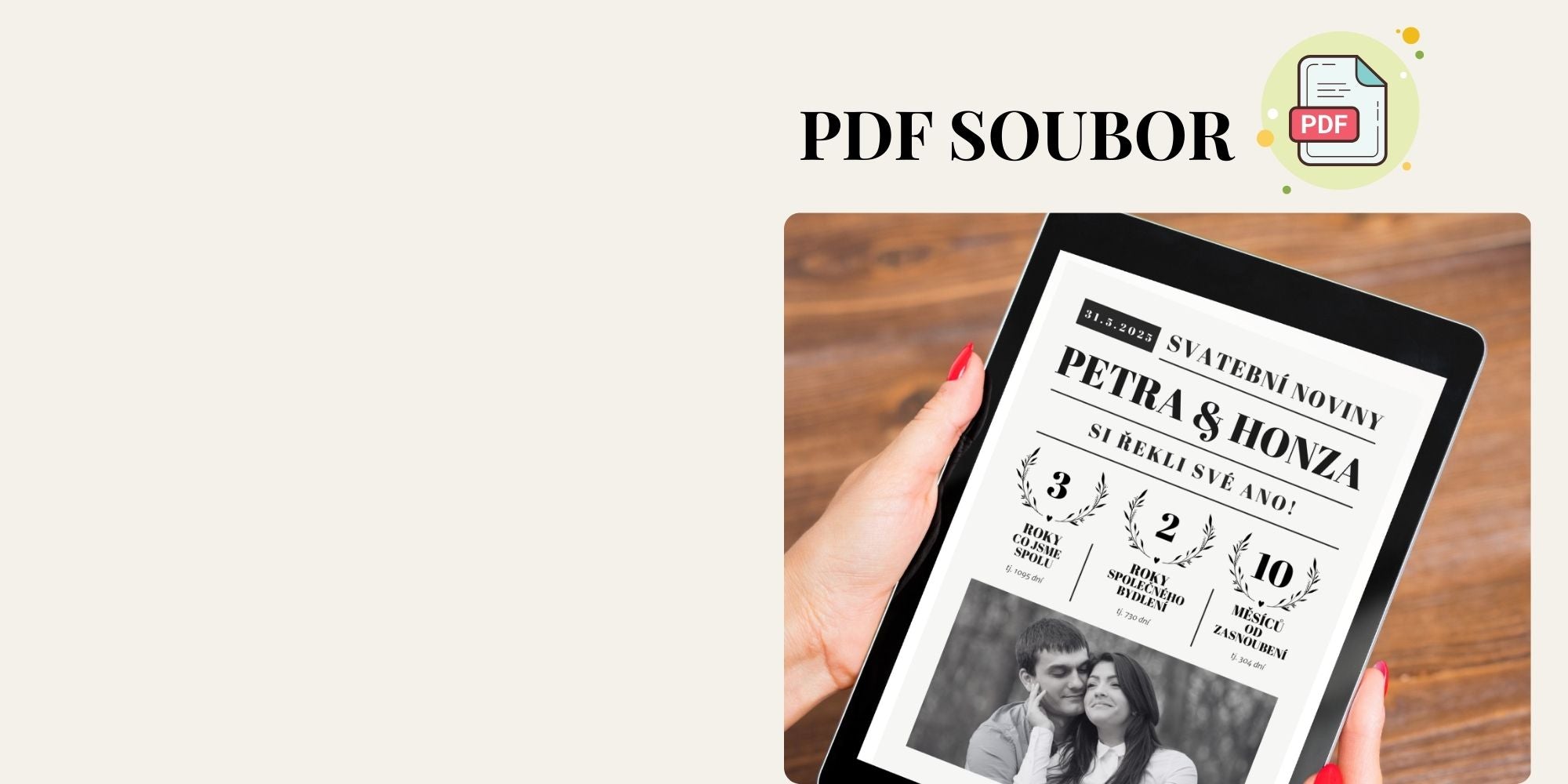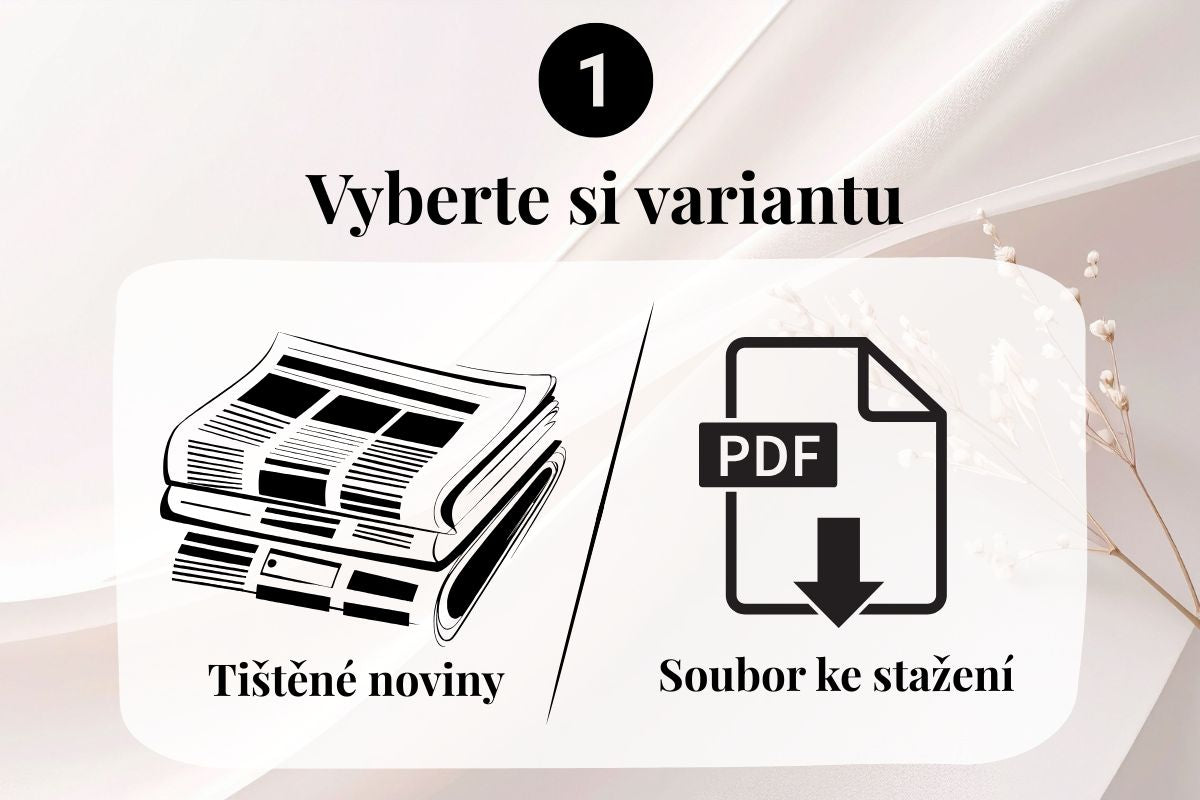 Vyberete si, zda chcetesvatební noviny včetně tisku, nebotiskové PDF k vlastnímu vytištění.