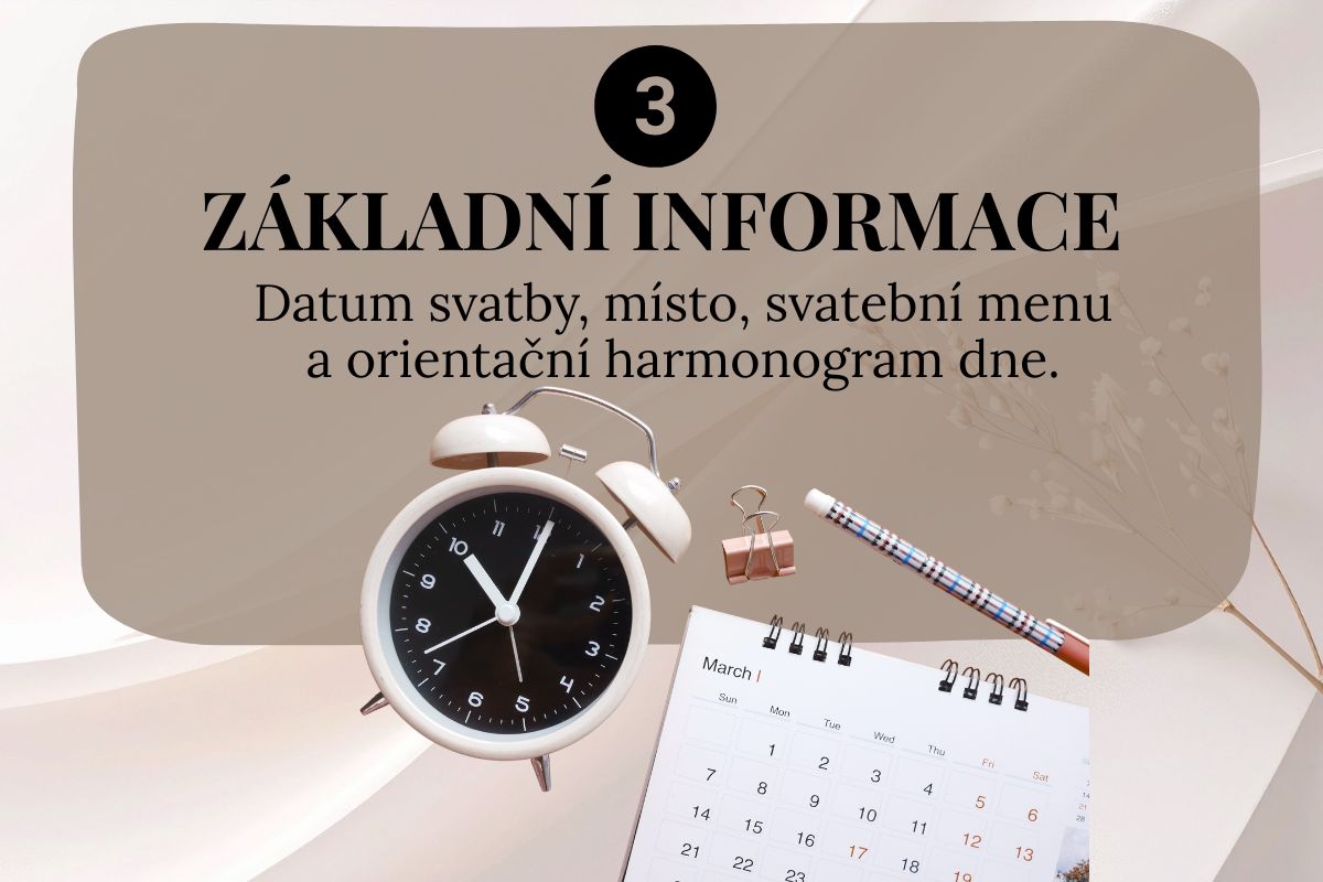 Datum svatby, místo, orientačníharmonogramdne, svatebnímenua vaše případná přání.